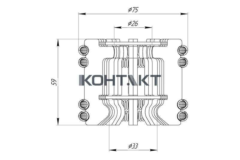 Контакт втычной Тюльпан КЛ-630-75-59 ламельный, ∅75 мм, 630А, ЗСЭА.301539.655-03...06
